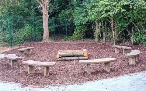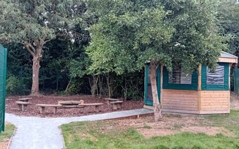 Our Forest School site which extends beyond the picture and further into the trees to allow our students to use all the natural resources that the woodland area has to offer.